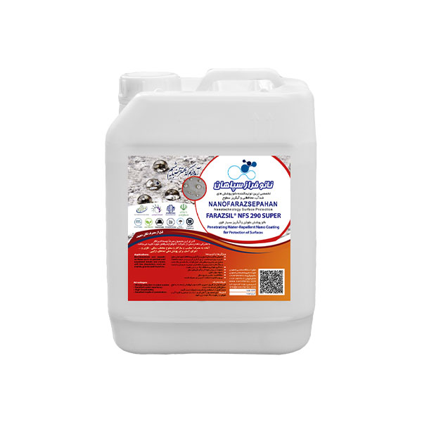 FARAZSIL® NFS ۲۹۰ SUPER محلول سیلیکونی بر پایه سیلان و سیلوکسان، تولید شده بر اساس نانوتکنولوژی است. محصول FARAZSIL® NFS ۲۹۰ SUPER دارای کیفیت عالی، آبگریزکننده و ضدآب کننده نفوذی چندمنظوره با دوام طولانی است. FARAZSIL® NFS ۲۹۰ SUPER با نفوذ بسیار زیاد به تمام سطوح ساختمانی خاصیت آبگریزی فوق ‏‏العاده ‏ای را ایجاد می‏کند. این محصول با ایجاد واکنش و نفوذ تا عمق حداقل ۵ میلیمتر در منافذ مصالح ساختمانی و سطوح با جذب بالا و پایین، پوشش ضدآب قوی ایجاد کرده و باعث تشکیل غشای غیر‏قابل نفوذ در برابر نشتی می‏شود، در نتیجه باعث محافظت سطوح در برابر صدمات ساختاری و ظاهری ناشی از جذب رطوبت مانند شوره زدگی، هوازدگی، یخ زدگی، رشد قارچ و کپک و غیره می گردد. این محصول قابلیت کاربرد بر روی سطوح فلزی، سنگ‏های طبیعی و مصنوعی و …دارد.